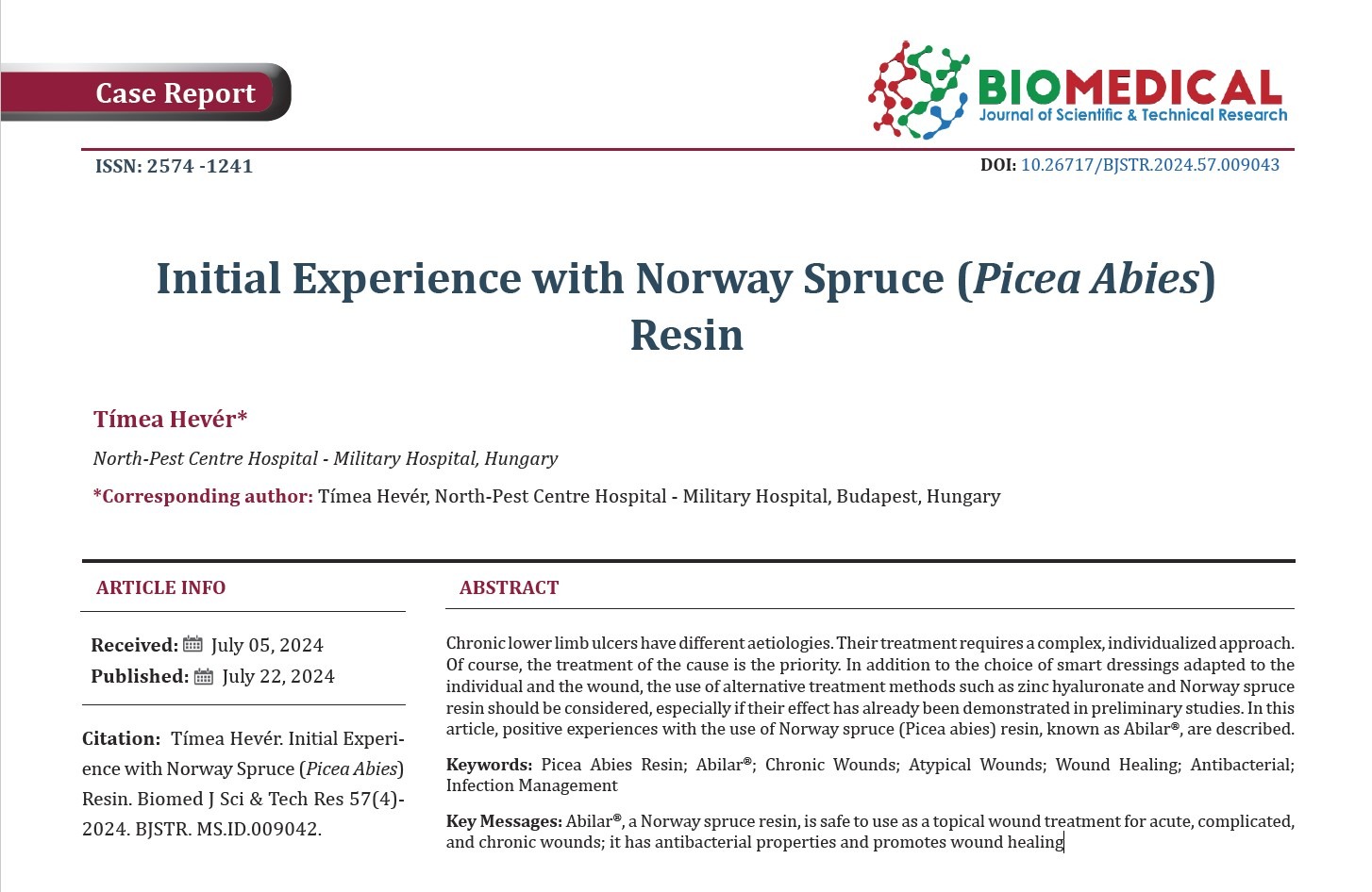 Key Messages: Abilar®, a Norway spruce resin, is safe to use as a topical wound treatment for acute, complicated, and chronic wounds; it has antibacterial properties and promotes wound healing